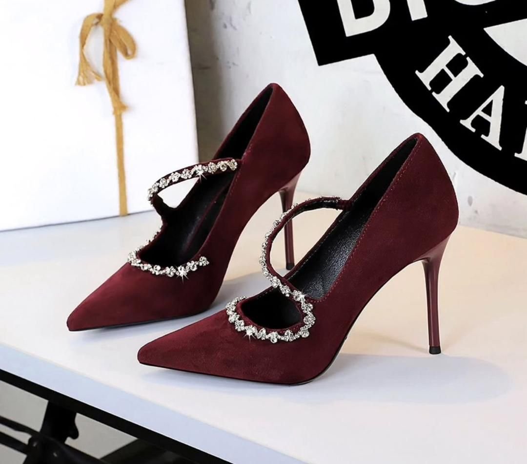 Pointed-Toe Stiletto Heels with a Rhinestone-Embellished Mary Jane Strap