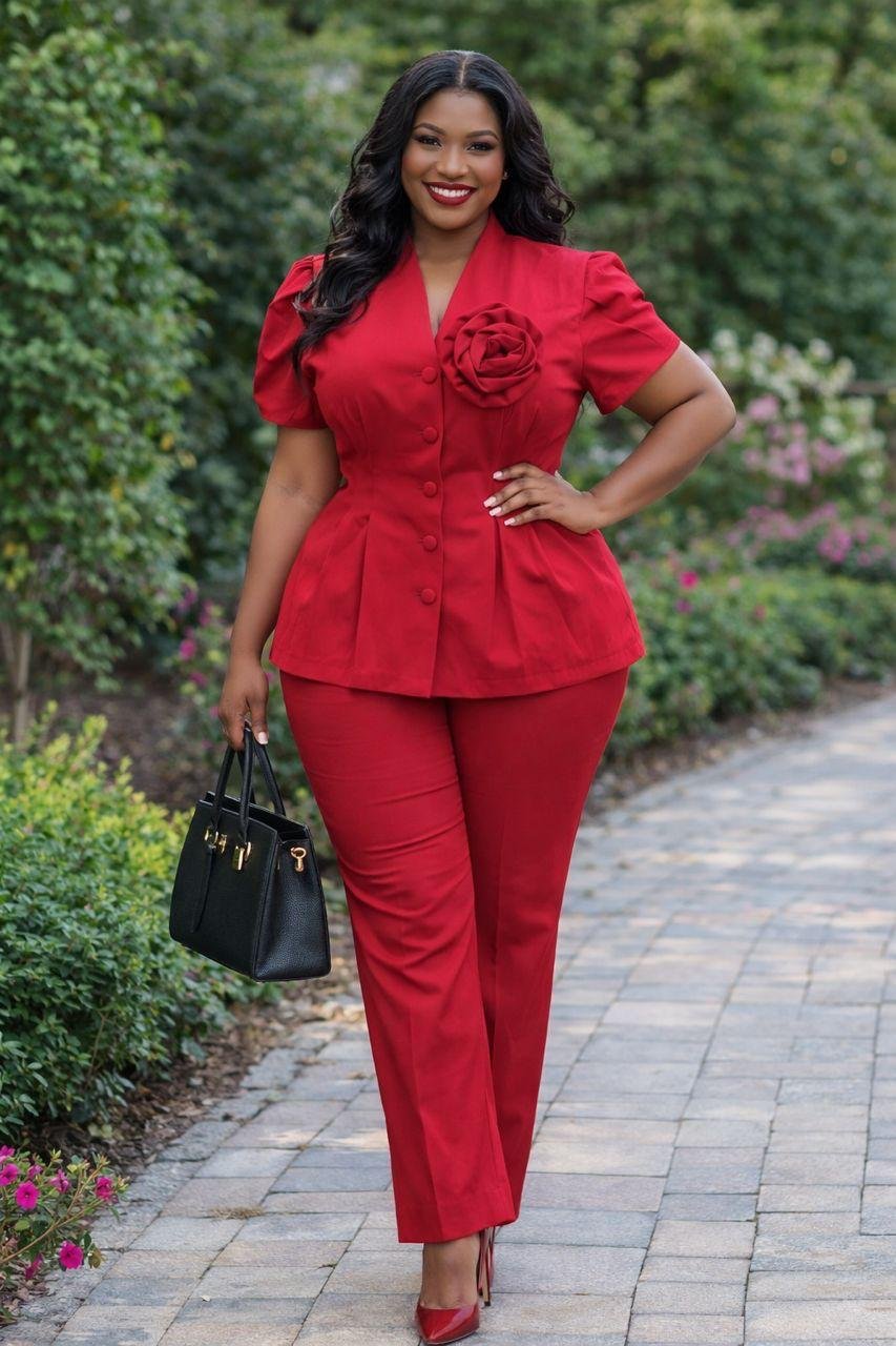 Elevate your professional and evening wear with our stunning “Elegant Bloom” Peplum Pant Suit. This sophisticated two-piece set is designed to flatter your silhouette while exuding timeless elegance.