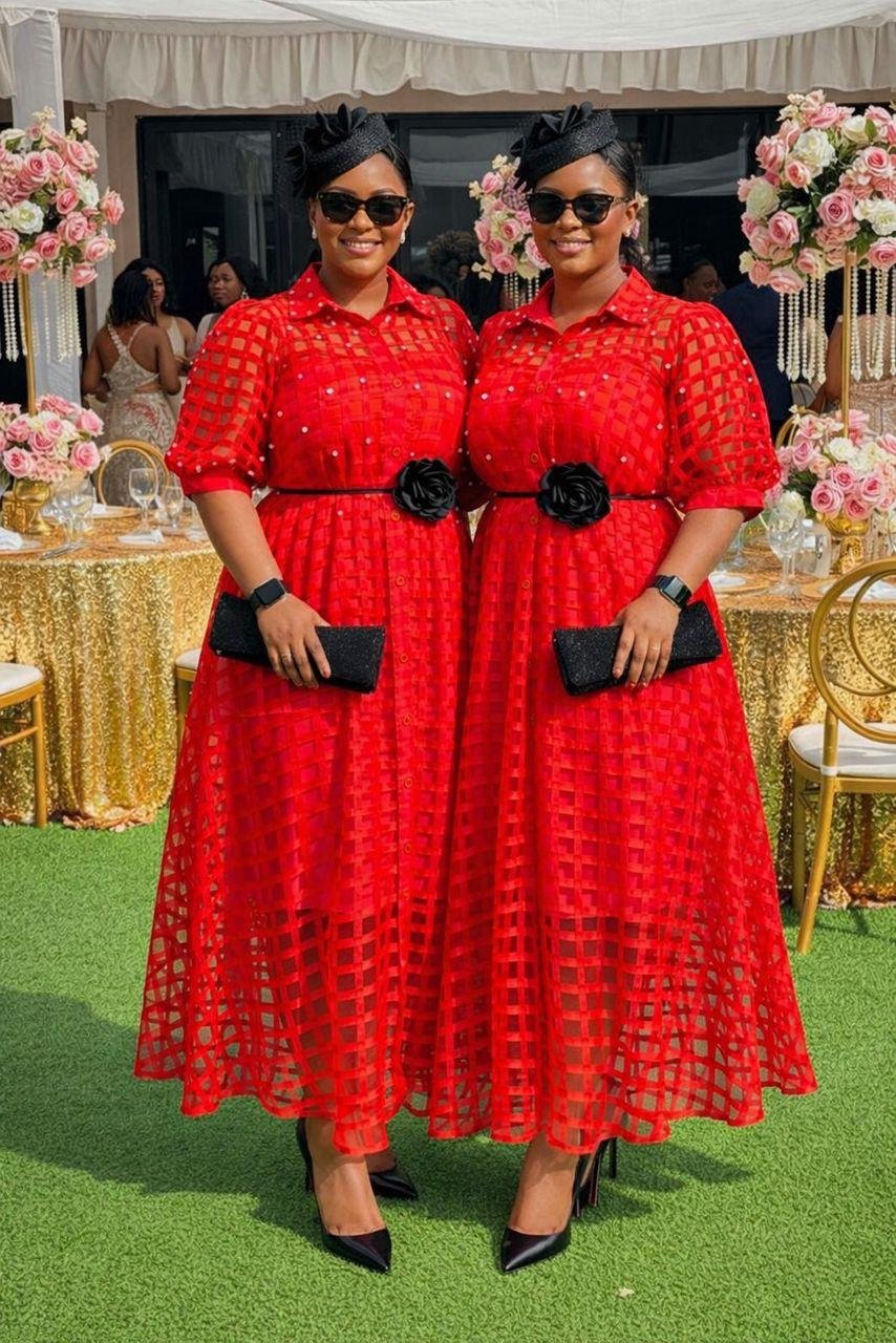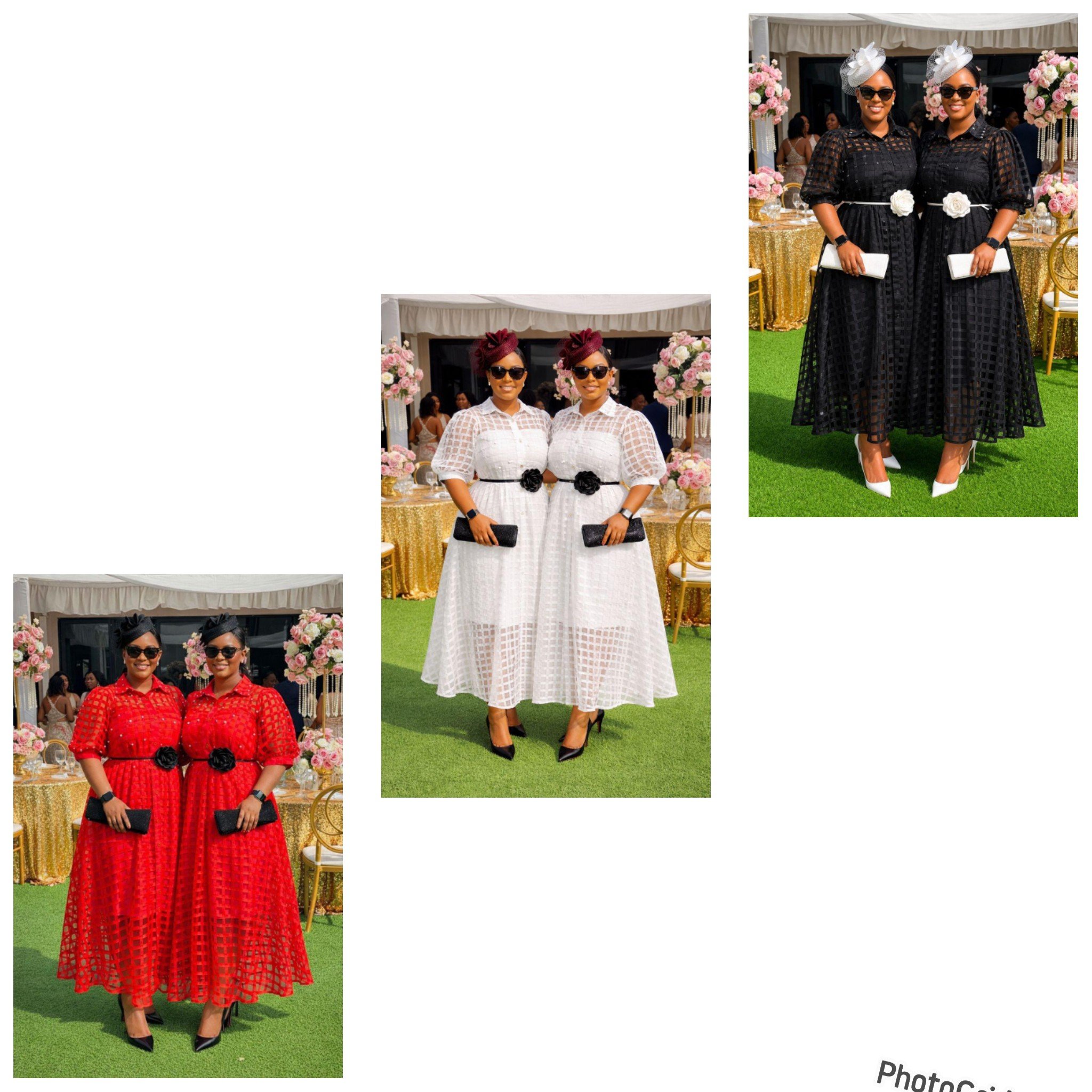 Available in a vibrant palette including classic Red, timeless White, and sophisticated Black, this dress combines traditional textures with a modern silhouette.