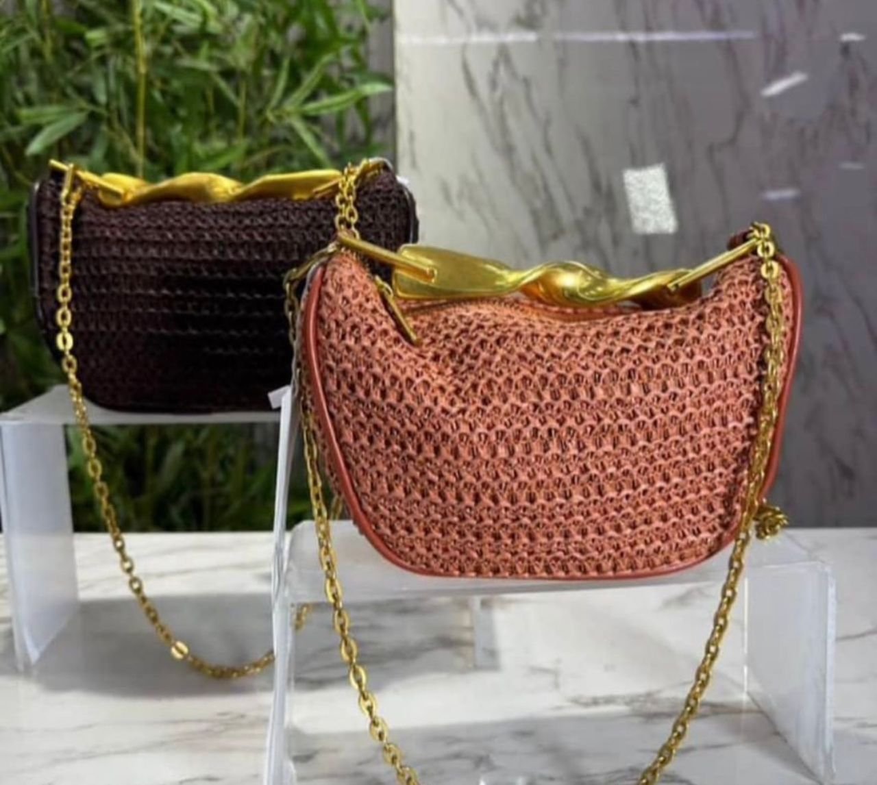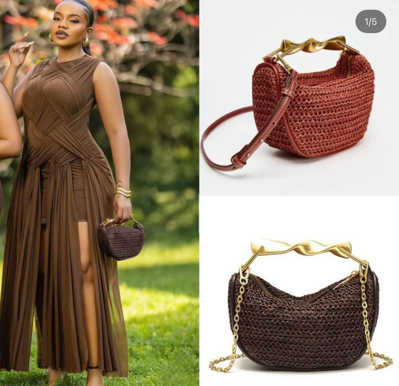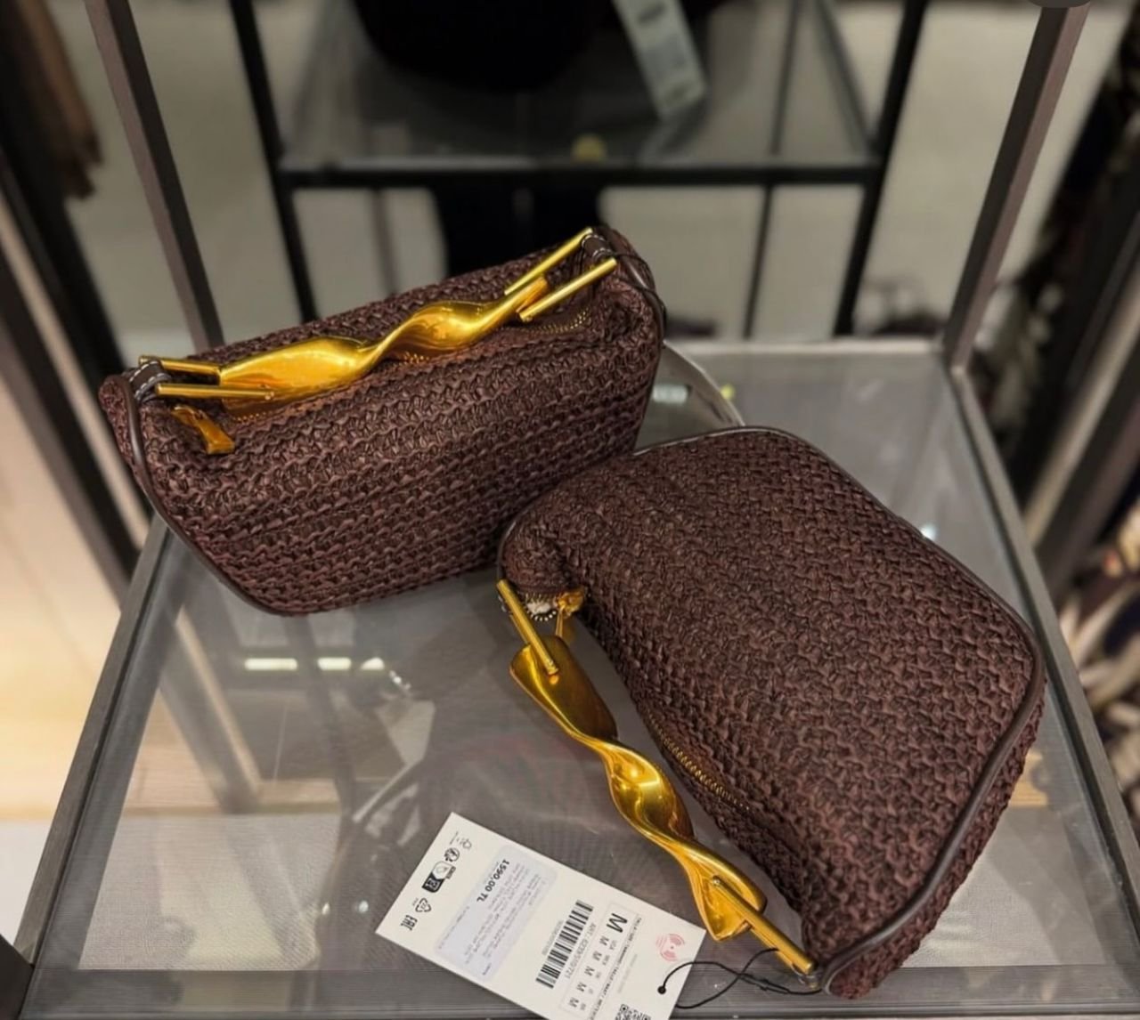 Zara Mini with a Woven Texture and Distinctive Gold-Colored Metallic Handle